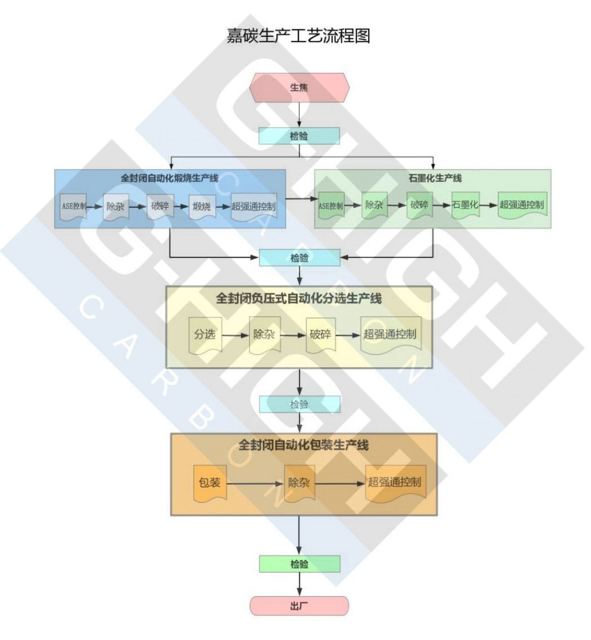 嘉碳增碳劑的每一顆碳粒,經(jīng)過12道工序,對碳粒內(nèi)微細孔道的處理,使增碳劑在使用過程中的“超強通、速熔度、吸收率”等指標,得到極大的提高。